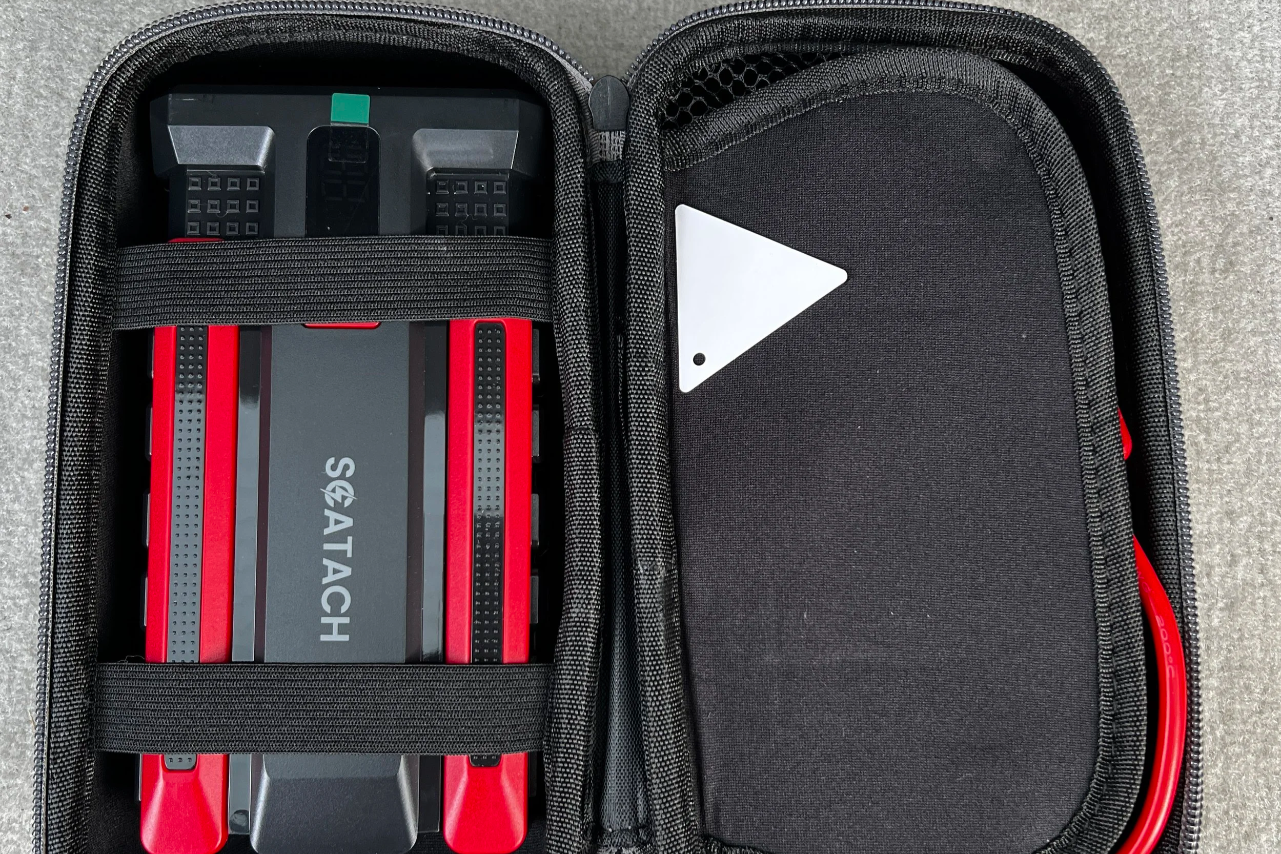We also keep jumper cables in the car, just in case. But our go-to is this battery starter.